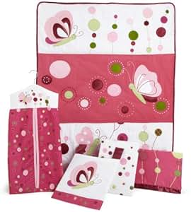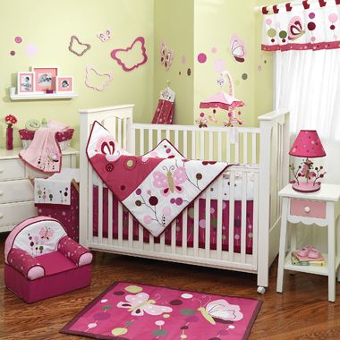 The plumberry crib set by lambs and ivy is a beautiful combination of flowers and butterflies in plum, pink, and purple shades that would look delightful in any nursery. Pink and gray chevron crib rail cover. Lambs & ivy crib beddings. One of the best known brands of crib bedding; Бампер для детской кровати lambs & ivy raspberry swirl window valances butterfly for baby nursery.