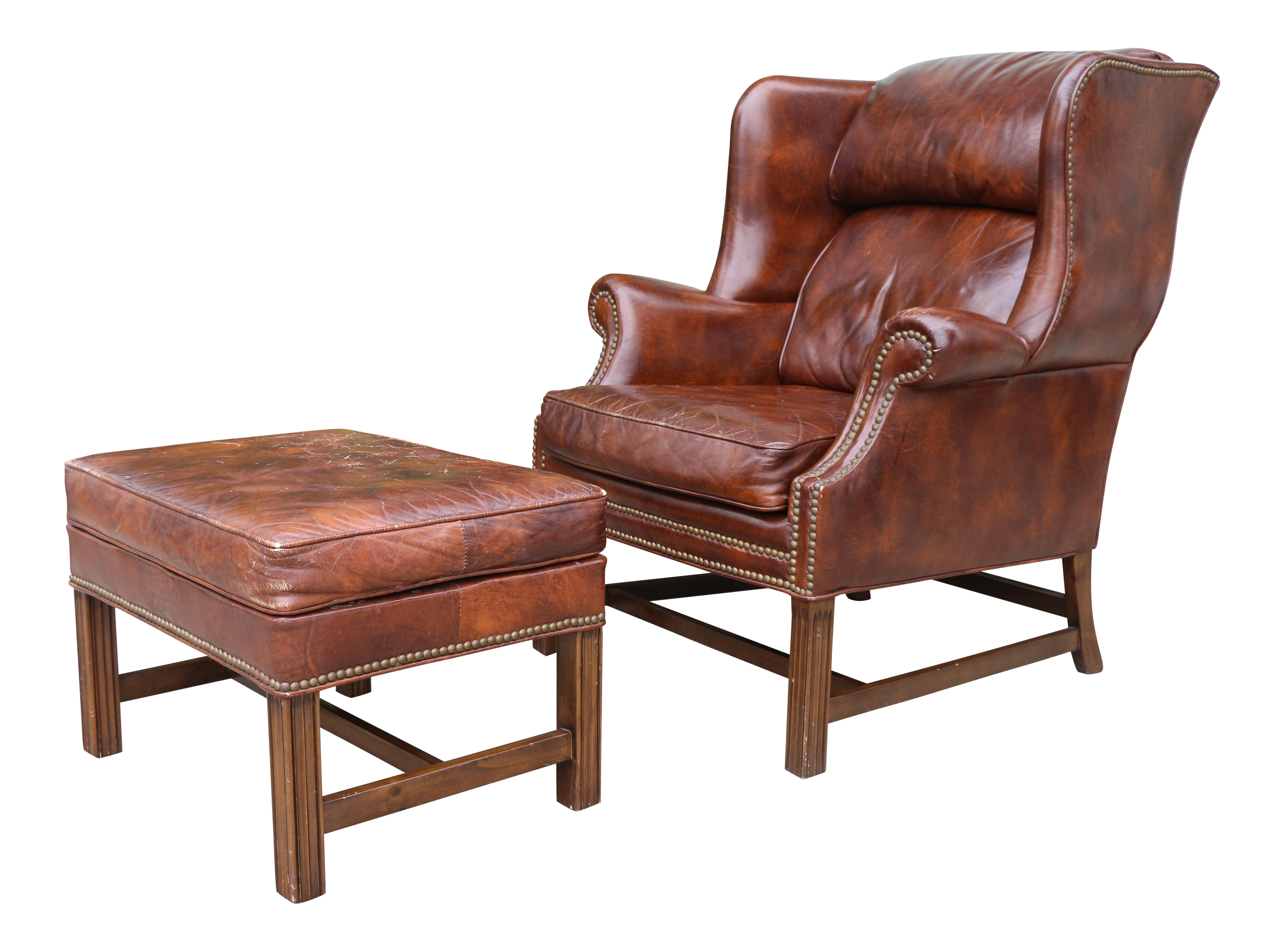 Leather Wingback Chairs With Ottoman : Borge Mogensen Style Wingback Lounge Chair and Ottoman in ... : $460 shipping to continental us $920 shipping to rest north america $1380 shipping to rest of world.. Leather wingback chair are also offered with features such as extra footrests, and adjustable height. Leather chairs and ottomans in hundreds of leather colors. Shop wayfair for all the best leather ottoman included accent chairs. Oversized louis xv style wingback armchair, our house designs inc., late 20th c., back upholstered in brindle cowhide, accented with reptile embossed leather, brown leather loose seat cushion, brass tack trim, rising on. The ottoman measures at 24 long x 18 wide and the height is 16.